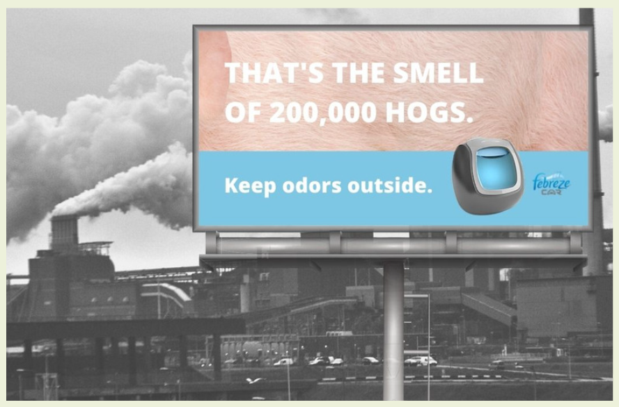 These billboards would be strategically positioned near odor sources such as agricultural sites, industrial complexes, wastewater treatment plants, landfills, etc.