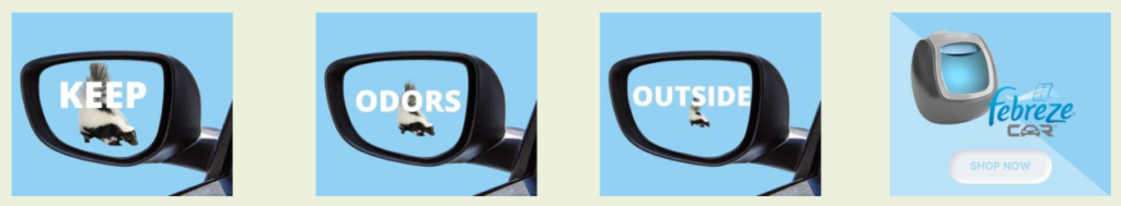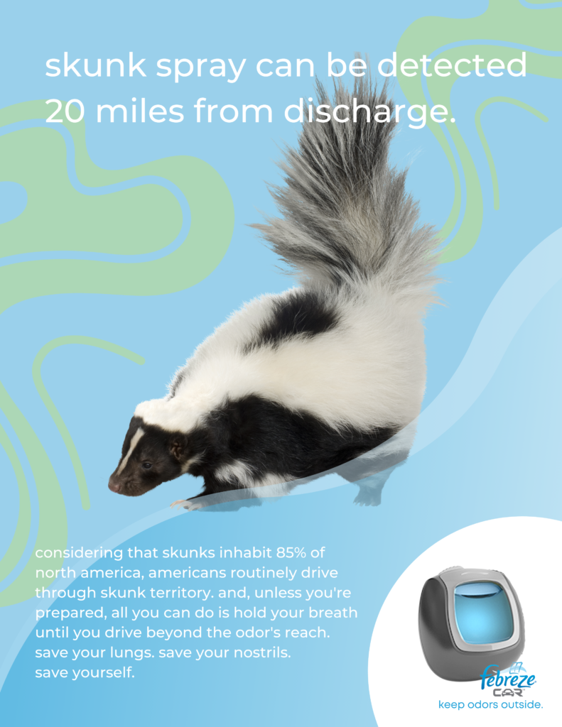 Febreze Auto’s current campaign highlights odors that materialize from within the vehicle (pet and food odors, etc). Our team pivoted by focusing on external factors as the source for automotive odors.
