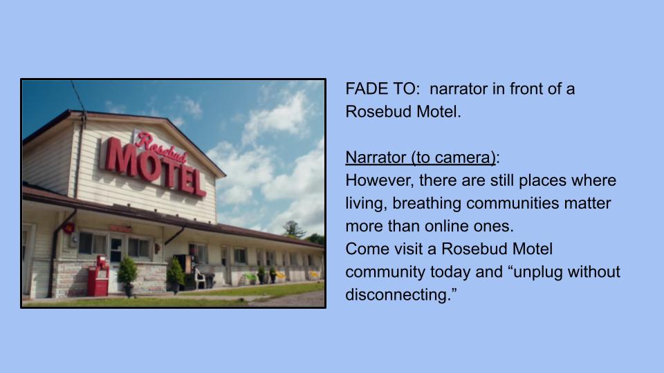 Students were instructed to create a campaign from a pitch delivered by Eugene Levy’s character in the show Schitt’s Creek.